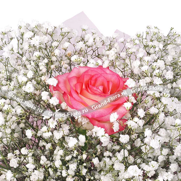 Розовая роза с гипсофилой - Любовь принцессы